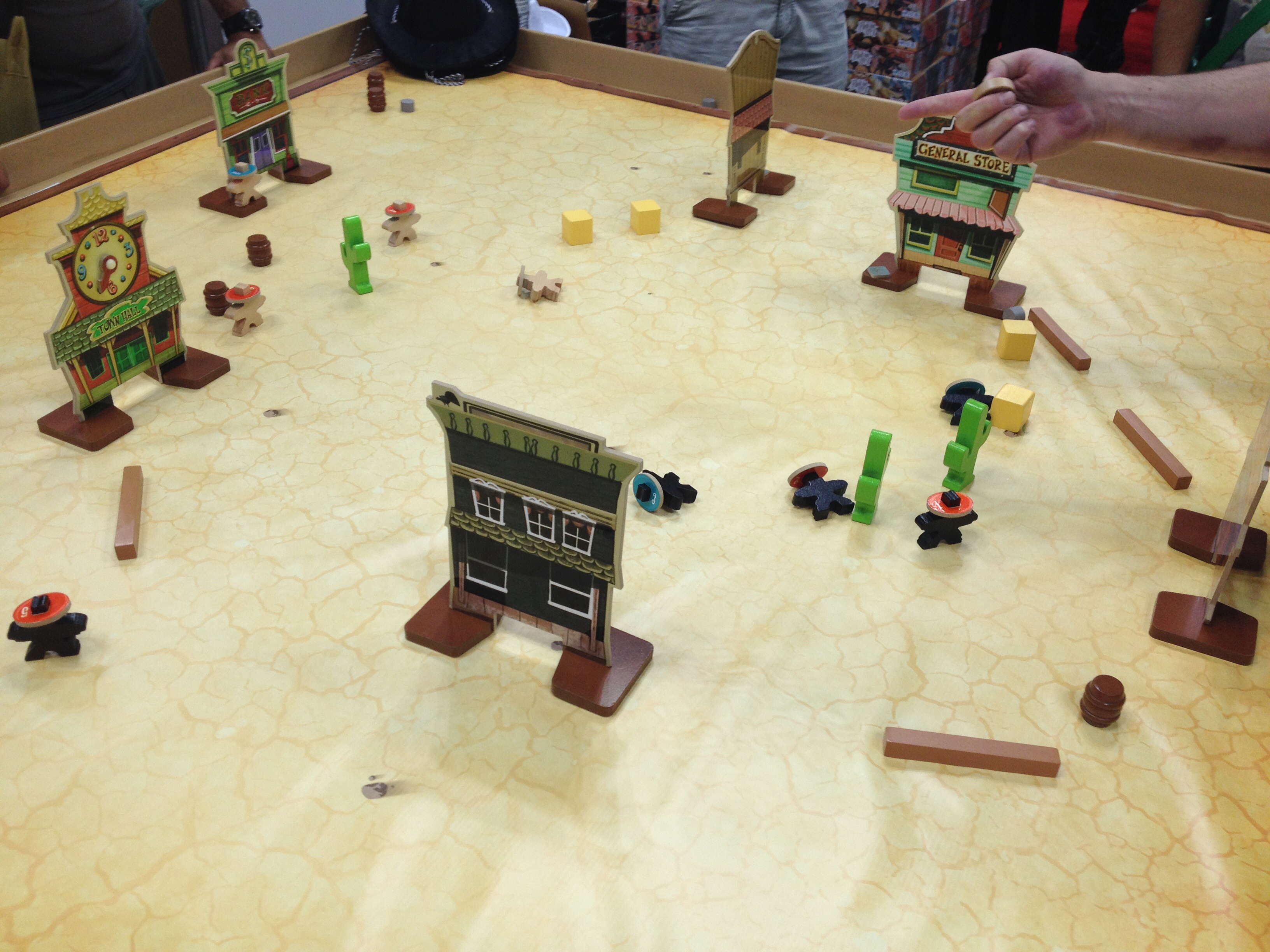 Ist ein Geschicklichkeitsspiel, was den Esstisch zum Wilden Westen macht. Das haben wir der amerikanischen Firma Pretzel Games zu verdanken.